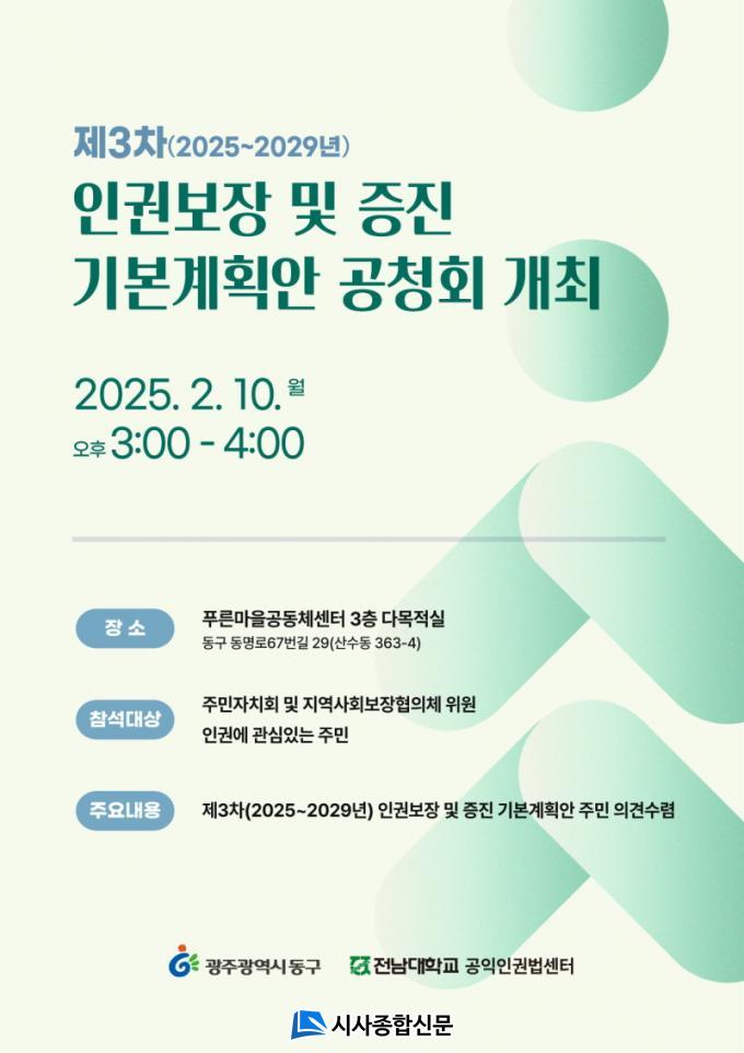 | ±¤Áֽà µ¿±¸, Á¦3Â÷ À뱂 º¸Àå ±âº»°èȹ °øÃ»È¸ °³ÃÖ 2025~2029 Á¤Ã¥¡¤ÃßÁø Àü·«¡¤¼¼ºÎ°úÁ¦ ¹æÇâ Á¦½Ã µî |