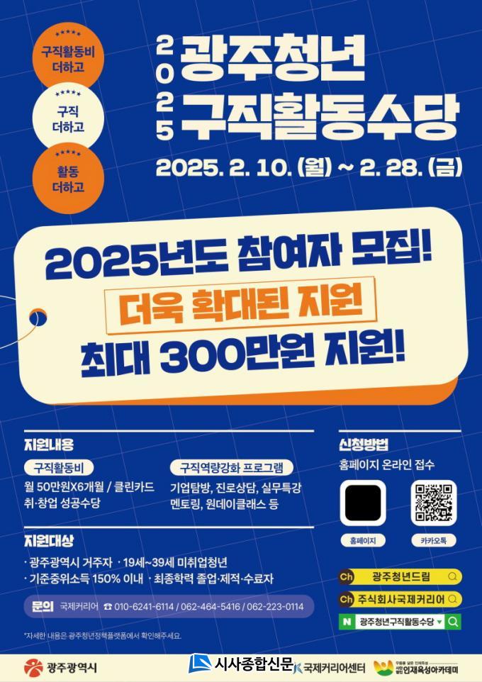 ±¤ÁÖ±¤¿ª½Ã(½ÃÀå °±âÁ¤)´Â Áö¿ª ¹ÌÃë¾÷û³âÀ» ´ë»óÀ¸·Î ±¸Á÷Ȱµ¿¿¡ ÇÊ¿äÇÑ ºñ¿ë°ú ´Ù¾çÇÑ ¿ª·®°È ÇÁ·Î±×·¥À» Áö¿øÇÏ´Â ¡®±¤ÁÖ Ã»³â ±¸Á÷Ȱµ¿¼ö´ç Áö¿ø»ç¾÷¡¯À» °ÈÇØ ÃßÁøÇÑ´Ù.