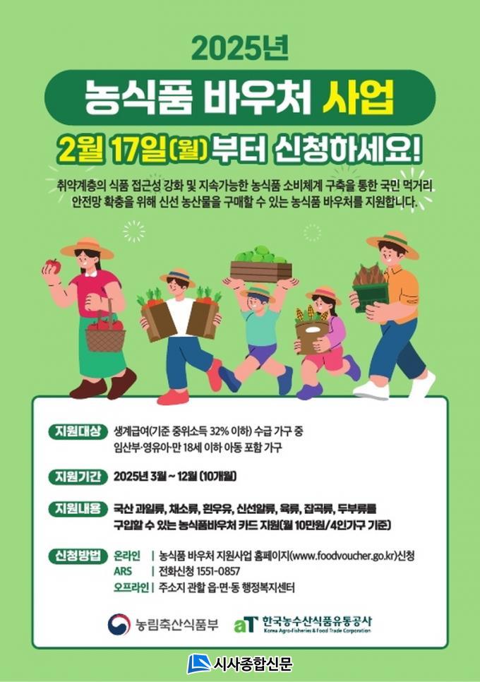 ¿À´Â 2¿ù 17ÀϺÎÅÍ ½Åû Á¢¼ö¸¦ Çϸç À¾¡¤¸é¡¤µ¿ ÇàÁ¤º¹Áö¼¾Å͸¦ ¹æ¹®Çϰųª ³ó½Äǰ¹Ù¿ìó ´©¸®Áý(www.foodvoucher.go.kr) ¿Â¶óÀÎ ½Åû, ´ëÇ¥¹øÈ£(1551-0857) ARS ¼ºñ½º¸¦ ÅëÇØ ´Ù¾çÇÑ °æ·Î·Î ½ÅûÇÒ ¼ö ÀÖ´Ù.