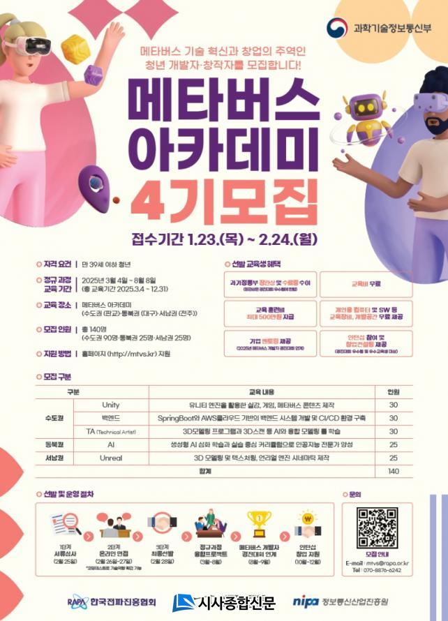 ÀÌ »ç¾÷Àº ÃֽŠ¸ÞŸ¹ö½º ±â¼ú°ú ÄÜÅÙÃ÷ Á¦ÀÛ ¿ª·®À» °®Ãá ÇÙ½É ÀÎÀ縦 ¾ç¼ºÇϱâ À§ÇÑ °ÍÀ¸·Î, ½Ã¿Í ÁøÈï¿øÀº ¸ÞŸ¹ö½º»ê¾÷¿¡ °ü½ÉÀÌ ÀÖ´Â ¼³²±Ç ÀçÁ÷ÀÚ¿Í ´ëÇлý, Ãë¾÷Áغñ»ý µî ¸¸ 39¼¼ ÀÌÇÏ Ã»³â 25¸íÀ» ¼±¹ßÇØ ¿À´Â 3¿ùºÎÅÍ 8¿ù±îÁö ±³À°À» ¿î¿µÇÒ ¿¹Á¤ÀÌ´Ù.