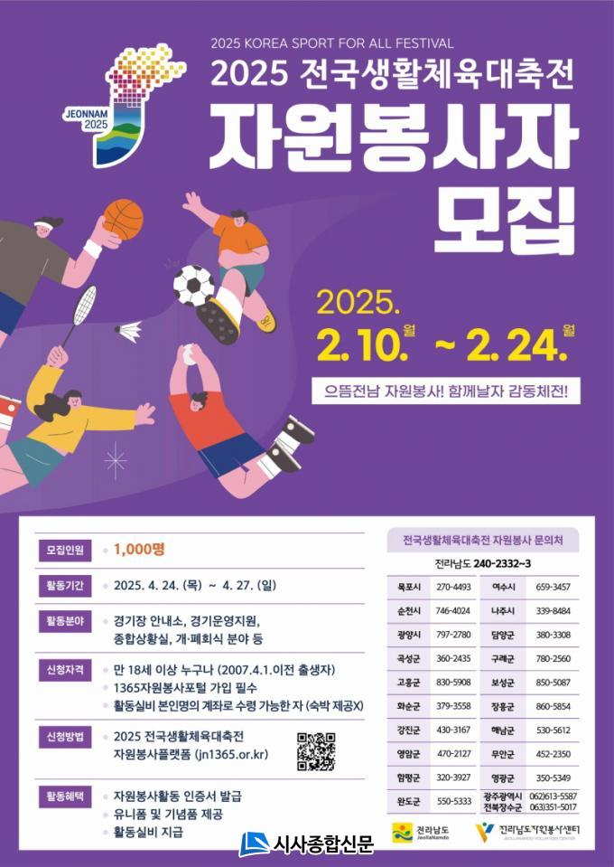 ÇÑÆí, 2025 Àü±¹»ýȰüÀ°´ëÃàÀüÀº ¸ñÆ÷¸¦ Áß½ÉÀ¸·Î Àü³² 19°³ ½Ã±º 58°³ °æ±âÀå¿¡¼ ¿¸®¸ç, °íÈﱺ °³ÃÖ Á¾¸ñÀº Ã౸(Dz»ì)·Î °íÈï»ýȰüÀ°°ø¿ø¿¡¼ ÁøÇàµÉ ¿¹Á¤ÀÌ´Ù.