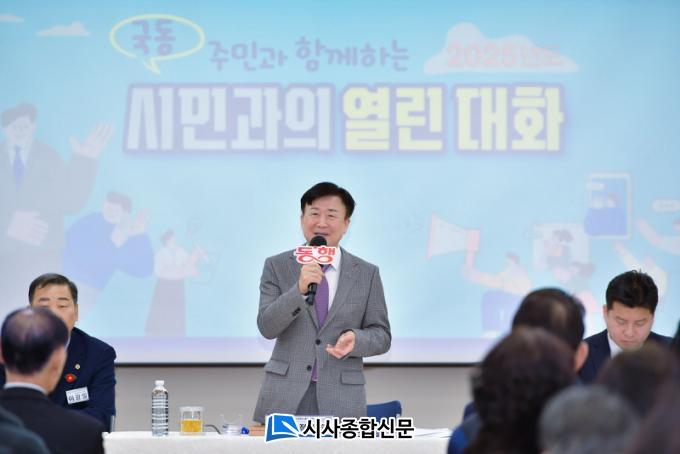 Á¤±â¸í ¿©¼ö½ÃÀåÀº ¡°À̹ø ½Ã¹ÎÀÇ ¼Ò¸®¸¦ ´ãÀº ¡®¿ì¸®µ¿³× À̾߱â´Â¡¯ ´çÀÏ Çà»çÀå¿¡¼ÀÇ 1½Ã°£ ³²ÁþÇÑ ´ëȸ¦ º¸¿ÏÇØ ´õ ¸¹Àº ½Ã¹ÎÀÇ ¸ñ¼Ò¸®¿¡ ±Í ±â¿ïÀÌ°í ½Ã¹Î°ú ½ÃÁ¤À» ÇÔ²² °í¹ÎÇϰí ÇØ¹ýÀ» ã´Â ´ëÈÀÇ ÀåÀ» ¸¸µé°íÀÚ ÁغñÇß´Ù¡±°í ÀüÇß´Ù.