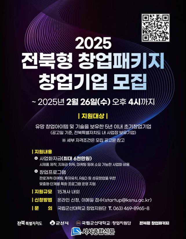| ±º»ê½Ã, 2025³â ÀüºÏÇü â¾÷ÆÐŰÁö Áö¿ø»ç¾÷ Âü¿©±â¾÷ ¸ðÁý â¾÷ 5³â À̳» ±â¾÷ 15°³»ç, »ç¾÷ÈÀÚ±Ý ÃÖ´ë 6õ¸¸¿ø Áö¿ø