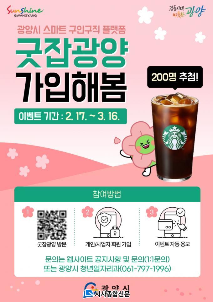 Âü¿©¸¦ Èñ¸ÁÇÏ´Â ±â¾÷ ¹× °³ÀÎȸ¿øÀº ¡®±ÂÀⱤ¾ç¡¯ ´©¸®Áý(https://job.gwangyang.go.kr)¿¡¼ ȸ¿ø°¡ÀÔ Çϸé À̺¥Æ®¿¡ ÀÚµ¿ ÀÀ¸ðµÇ¸ç, °³ÀÎȸ¿øÀº ³×À̹ö³ª īī¿ÀÅå °£Æí°¡ÀÔÀ» ÅëÇØ ´õ¿í ½¬¿î ¹æ¹ýÀ¸·Î Âü¿©ÇÒ ¼ö ÀÖ´Ù.