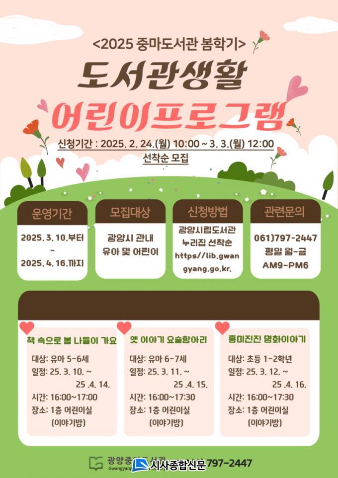 À̹ø º½Çб⠵µ¼°ü »ýȰ ¾î¸°ÀÌ ÇÁ·Î±×·¥ ¼ö° ½ÅûÀº 2025³â 2¿ù 24ÀÏ(¿ù) ¿ÀÀü 10½ÃºÎÅÍ ±¤¾ç½Ã¸³µµ¼°ü ´©¸®Áý¸¦ ÅëÇØ ¼±Âø¼ø ½Åû Á¢¼ö¸¦ ÁøÇàÇÑ´Ù. ¼ö°»ý(¾î¸°ÀÌ) À̸§(¾ÆÀ̵ð)À¸·Î ½ÅÃ»ÇØ¾ß À¯È¿ÇÏ´Ï, Á¢¼ö Àü ½ÅûÀÚ Á¤º¸°¡ Á¤È®ÇÑÁö ¹Ýµå½Ã È®ÀÎÇØ¾ß ÇÑ´Ù.