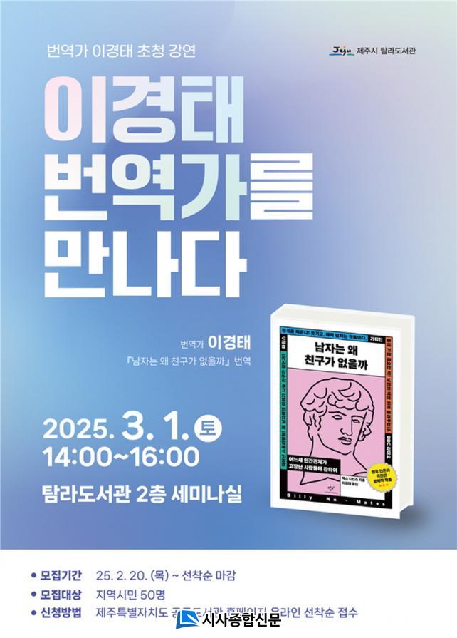 ¡®À̰æÅ ¹ø¿ª°¡¸¦ ¸¸³ª´Ù¡¯ °¿¬¿¡ Âü¿©¸¦ ¿øÇÏ´Â ½Ã¹ÎÀº 2¿ù 20ÀϺÎÅÍ Á¦ÁÖÆ¯º°ÀÚÄ¡µµ °ø°øµµ¼°ü ´©¸®Áý(https://www.jeju.go.kr/lib) ¢¡Çà»ç/ÇÁ·Î±×·¥¢¡µµ¼°üÇÁ·Î±×·¥ ½ÅûÀ» ÅëÇØ Á¢¼öÇÒ ¼ö ÀÖÀ¸¸ç, ±âŸ ÀÚ¼¼ÇÑ »çÇ×Àº ޶󵵼°ü(¢Ï064-728-8373)À¸·Î ¹®ÀÇÇÏ¸é µÈ´Ù.