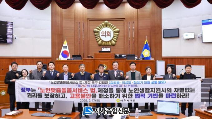 ³ªÁÖ½ÃÀÇȸ´Â À̹ø °ÇÀǾÈÀ» ÅëÇØ ¡ã³ëÀθÂÃãµ¹º½¼ºñ½ºÀÇ Áö¼Ó °¡´É¼º È®º¸¿Í ¼ºñ½º Áú Çâ»óÀ» À§ÇØ ¡¸³ëÀθÂÃãµ¹º½¼ºñ½º ¹ý¡¹À» Á¦Á¤ÇÒ °Í ¡ã¡¸³ëÀθÂÃãµ¹º½¼ºñ½º ¹ý¡¹ Á¦Á¤À¸·Î ³ëÀλýȰÁö¿ø»ç ±Ç¸® º¸Àå ¹× °í¿ëºÒ¾È ÇØ¼Ò¸¦ À§ÇÑ ¹ýÀû ±â¹ÝÀ» ¸¶·ÃÇÒ °ÍÀ» Ã˱¸Çß´Ù.