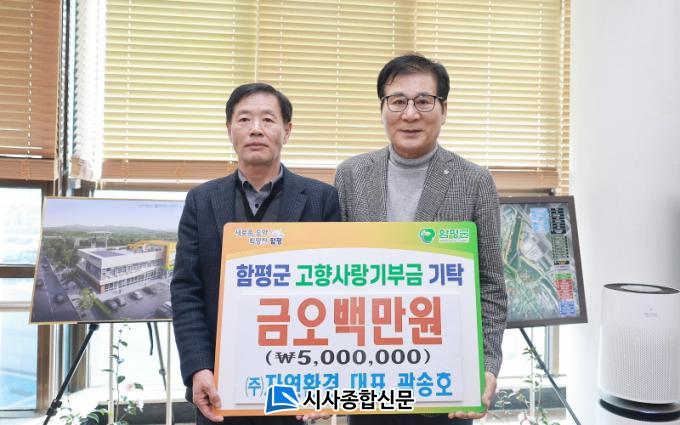 ÇÔÆò±ºÀº 20ÀÏ ¡°¢ßÀÚ¿¬È¯°æ °û¼ÛÈ£ ´ëÇ¥À̻簡 Àü³¯ ÇÔÆò±ºÃ»À» ã¾Æ °íÇâ»ç¶û±âºÎ±Ý 500¸¸¿øÀ» ±âŹÇß´Ù¡±°í ¹àÇû´Ù.