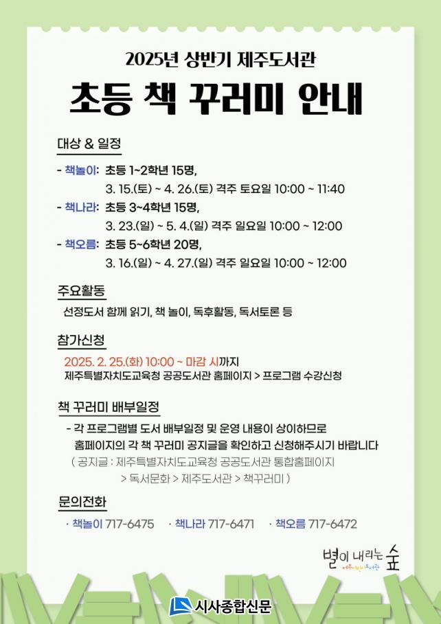 | Á¦ÁÖµµ¼°ü, 2025³â »ó¹Ý±â Ãʵî Ã¥ ²Ù·¯¹Ì Âü°¡ÀÚ ¸ðÁý ¡°Ã¥ Àд Áñ°Å¿ò ´À³¢·Á¸é µµ¼°üÀ¸·Î ¿À¼¼¿ä¡± |