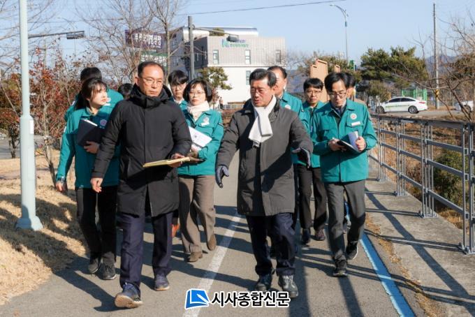 Á¤ ½ÃÀåÀÌ À̳¯ µÎ ¹øÂ°·Î ãÀº °÷Àº Áö³ÇØ 12¿ù ÁذøµÈ ±¤¾çÀ¾ ¼»ê ¸Ç¹ß°È±â±æ ÇöÀåÀ¸·Î, À̰÷Àº ¼»ê µ¥Å©±æ°ú ¼Ãµ¿îµ¿ÀåÀ» ¿¬°áÇÏ´Â »êÃ¥·Î·Î »ç¿ëµÇ°í ÀÖ´Ù. Á÷Á¢ ±æÀ» °ÉÀ¸¸ç ½Ã¼³¹°À» Á¡°ËÇÑ Á¤ ½ÃÀåÀº ½Ã¹Î ÆíÀǸ¦ À§ÇØ ¼öµµ½Ã¼³ ¾È³»ÆÇÀ» ¼³Ä¡ÇÏ°í ¹Ù´Ú µ¹Ãâ¹° Á¦°Å ¹× »ç¸é Á¤ºñ µî ȯ°æ °³¼±À» öÀúÈ÷ ÁøÇàÇÒ °ÍÀ» Áö½ÃÇß´Ù.