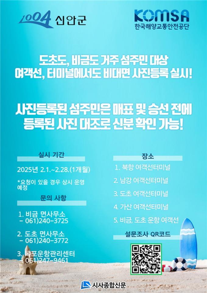[½Ã»çÁ¾ÇսŹ® = ¿À½ÂÅà ±âÀÚ] Çѱ¹Çؾ米Åë¾ÈÀü°ø´Ü(KOMSA, ÀÌ»çÀå ±èÁؼ®) ¸ñÆ÷¿îÇ×°ü¸®¼¾ÅÍ¿¡¼´Â Áö³ 2¿ù 1ÀϺÎÅÍ ¿¬¾È¿©°´¼± ÀÌ¿ë Ƚ¼ö°¡ ¸¹Àº ½Å¾È±º °ü³» ¼¶ ÁÖ¹ÎÀÇ ¿©°´¼± ½Â¼± Àü ½ÅºÐÈ®ÀÎ ÀýÂ÷¿¡ µû¸¥ ºÒÆíÇØ¼Ò¸¦ À§ÇØ ½Å¾È±º°ú Çù¾÷¡°½ÅºÐÁõ »çÀü µî·ÏÁ¦µµ¡±¸¦ ½ÃÇàÇϰí ÀÖ´Ù.