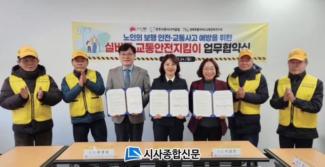 ÀüÁֽà ³ëÀκ¹Áö°ú(°úÀå À̱ݾÈ)¿Í ÀüÁÖ¼¿ø½Ã´Ï¾îŬ·´(°üÀå ±è°æ¿Á), ÀüºÏƯº°ÀÚÄ¡µµ±³Å빮ȿ¬¼ö¿ø(¿øÀå À¯¿µ¿í)Àº 24ÀÏ ´ë¿ìºôµù 7Ãþ ¿µ»óȸÀǽǿ¡¼ ¡®½Ç¹öÁ¸ ±³Åë¾ÈÀüÁöÅ´ÀÌ »ç¾÷¡¯ ¿î¿µÀ» À§ÇÑ »ïÀÚ ¾÷¹«Çù¾àÀ» ü°áÇß´Ù.