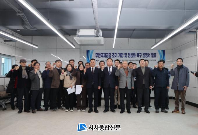À̳¯ ¼º¸í¼ ¹ßÇ¥¿¡´Â ±è»ê ¹«¾È±º¼ö¿Í ÀÌÈ£¼º ¹«¾È±ºÀÇȸ ÀÇÀå, ¹«¾È±¹Á¦°øÇ×Ȱ¼ºÈÃßÁøÀ§¿øÈ¸ À§¿ø, ¹«¾È±º »çȸ´Üü µî 30¿© ¸íÀÌ Âü¼®ÇÏ¿© ¹«¾È±¹Á¦°øÇ×ÀÇ Ç×Çà¾ÈÀü½Ã¼³À» Á¶¼ÓÈ÷ º¹±¸ÇÏ¿© Á¶±â °³Ç×ÇÒ °ÍÀ» Ã˱¸Çß´Ù.