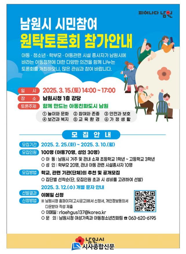 [½Ã»çÁ¾ÇսŹ® = ¿À½ÂÅà ±âÀÚ] ³²¿ø½Ã(½ÃÀå ÃÖ°æ½Ä)´Â ¾Æµ¿°ú ½Ã¹ÎÀÇ ÀǰßÀ» ûÃëÇÏ¿© ¾Æµ¿ÀÌ ´õ ÇູÇÑ ¾Æµ¿Ä£Èµµ½Ã¸¦ ¸¸µé±â À§ÇÑ ¡®½Ã¹ÎÂü¿© ¿øÅ¹Åä·Ðȸ¡¯ Âü°¡ÀÚ¸¦ ´ÙÀ½ ´Þ 10ÀϱîÁö ¸ðÁýÇÑ´Ù°í ¹àÇû´Ù.