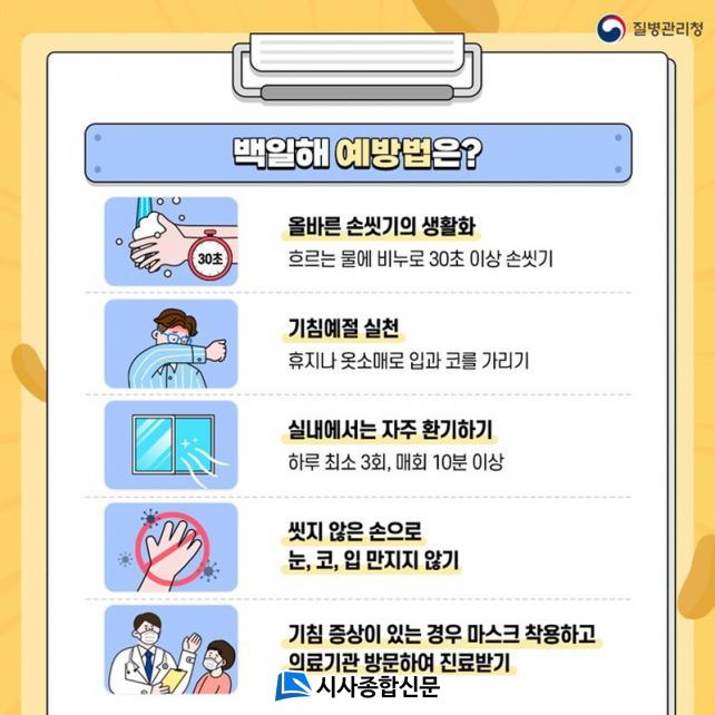 ¹éÀÏÇØ ¿¹¹æÀ» À§Çؼ´Â ¹«¾ùº¸´Ù °³ÀÎÀ§»ý °ü¸®°¡ Áß¿äÇÏ´Ù. ¼Õ ¾Ä±â´Â È帣´Â ¹°¿¡ ºñ´©·Î 30ÃÊ ÀÌ»ó ¾Ä¾î¾ß Çϸç, ±âħÀ̳ª Àçä±â¸¦ ÇÒ ¶§´Â ¿Ê¼Ò¸Å ¾ÈÂÊÀ¸·Î ÀÔ°ú ÄÚ¸¦ °¡·Á ħ¹æ¿ï ÀüÆÄ¸¦ ÃÖ¼ÒÈÇØ¾ß ÇÑ´Ù.