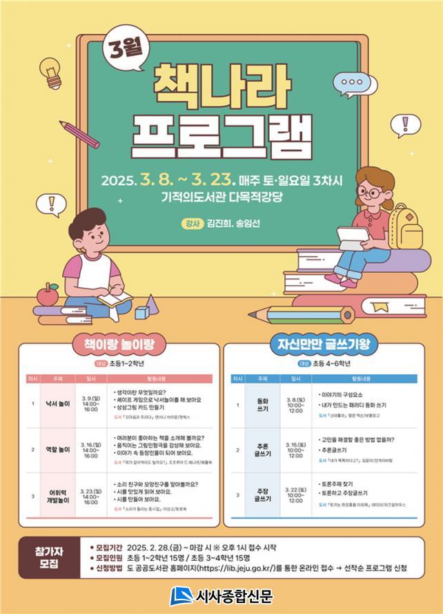 3¿ù ÇÁ·Î±×·¥À¸·Î´Â ÃʵîÇб³ 1~2Çг⠴ë»ó <Ã¥À̶û ³îÀ̶û>°ú ÃʵîÇб³ 3~4Çг⠴ë»ó <ÀڽŸ¸¸¸ ±Û¾²±â¿Õ>ÀÌ ÁøÇàµÈ´Ù.