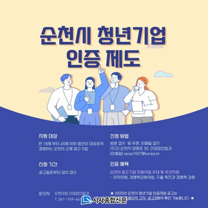 û³â ÀÎÁõÀ» ¹Ù¶ó´Â ±â¾÷Àº ¼øÃµ½Ãû ´©¸®Áý °í½Ã¡¤°ø°í¶õÀÇ ¡®2025³â ¼øÃµ½Ã û³â±â¾÷ ÀÎÁõ»ç¾÷¡¯ °ø°í¹®À» Âü°íÇÏ¿© ½Åû¼¸¦ ÀÛ¼ºÇÑ ÈÄ À̸ÞÀÏ, ¿ìÆí Á¢¼ö ¶Ç´Â ½Å¼ºÀå»ê¾÷°ú¿¡ ¹æ¹®ÇÏ¿© ¿¬Áß Á¦ÃâÇÏ¸é µÈ´Ù.