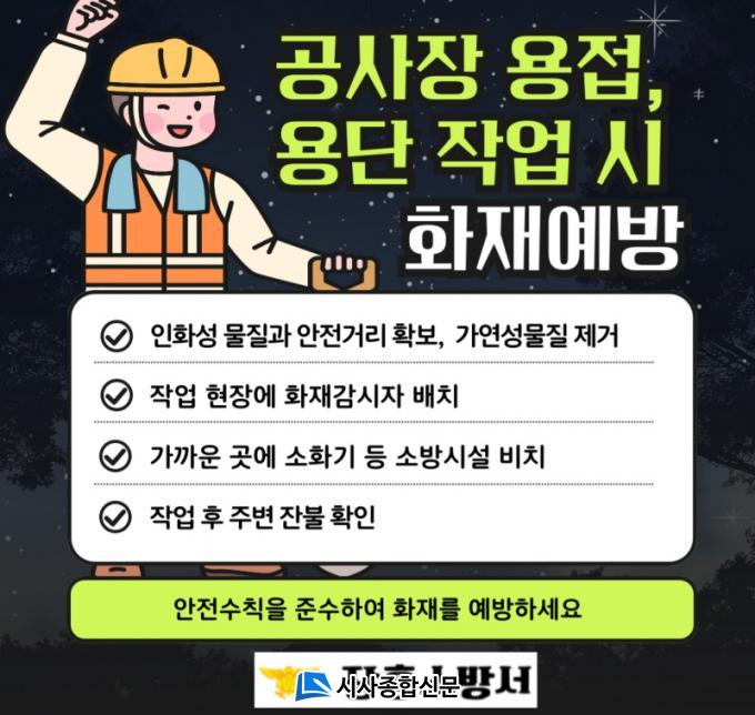 °Ç¼³ÇöÀå¿¡¼ÀÇ ¿ëÁ¢°ú Àý´Ü ÀÛ¾÷Àº ºÒƼ°¡ Æ¢°Å³ª °í¿ÂÀÇ ±Ý¼Ó ÆÄÆíÀÌ ÁÖº¯¿¡ ¶³¾îÁö¸é¼ ÈÀ縦 ÀÏÀ¸Å³ ¼ö ÀÖ´Â À§Çè ¿ä¼Ò·Î ÀÛ¿ëÇÑ´Ù. ƯÈ÷, ö° ÀÚÀ糪 ±âŸ °¡¿¬¼º ¹°ÁúÀÌ ÁÖº¯¿¡ ÀÖÀ» °æ¿ì ºÒƼ°¡ ½±°Ô ÈÀç·Î À̾îÁú ¼ö ÀÖ´Ù.