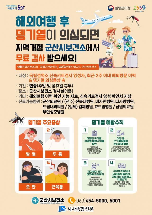 ¸¸¾à µ±â¿ À¯Çà ±¹°¡¸¦ ¹æ¹®ÇÑ ÈÄ ¸ð±â¿¡ ¹°·È°Å³ª ±Í±¹ ÈÄ 2ÁÖ À̳» ÀÇ½É Áõ»óÀÌ ³ªÅ¸³µ´Ù¸é, ¸ÕÀú Àü±¹ ±¹¸³°Ë¿ª¼Ò 13°÷¿¡¼ ¹«·á·Î ½Å¼Ó ŰƮ°Ë»ç(°£À̰˻ç)¸¦ ¹ÞÀ» ¼ö ÀÖ´Ù. À̶§ ½Å¼Ó ŰƮ°Ë»ç¸¦ ÅëÇØ ¾ç¼º Áø´ÜÀ» ¹Þ¾Ò°Å³ª, À½¼ºÀÌÁö¸¸ ÀÇ½É Áõ»óÀÌ ³ªÅ¸³µ´Ù¸é, ±º»ê½Ãº¸°Ç¼Ò¿¡¼ È®ÀÎ Áø´Ü°Ë»ç°¡ ÇÊ¿äÇÏ´Ù.
