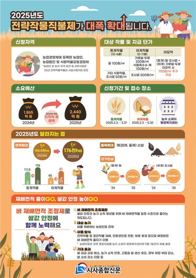Àü·«ÀÛ¹°Á÷ºÒÁ¦´Â ³í¿¡ ¹ä½Ò¿ë º Àç¹è¸¦ ´ëüÇì ¹Ð, Äá, °¡·ç½Ò µî ¼öÀÔ ÀÇÁ¸µµ°¡ ³ôÀº Àü·«ÀÛ¹°À̳ª ÇϰèÁ¶»ç·á¸¦ Àç¹èÇÏ´Â ³ó¾÷Àΰú ³ó¾÷¹ýÀο¡°Ô Á÷ºÒ±ÝÀ» Áö±ÞÇÏ´Â Á¦µµ·Î, µµ´Â ¿ÃÇØºÎÅÍ ³í¿¡¼ ÇϰèÁ¶»ç·á¸¦ Àç¹èÇÏ´Â ³ó°¡¸¦ ´ë»óÀ¸·Î ±âÁ¸ 430¸¸ ¿ø¿¡¼ 70¸¸ ¿øÀÌ ÀλóµÈ Àü·«ÀÛ¹°Á÷ºÒ±Ý 500¸¸ ¿ø/§µÀ» Áö±ÞÇÑ´Ù.