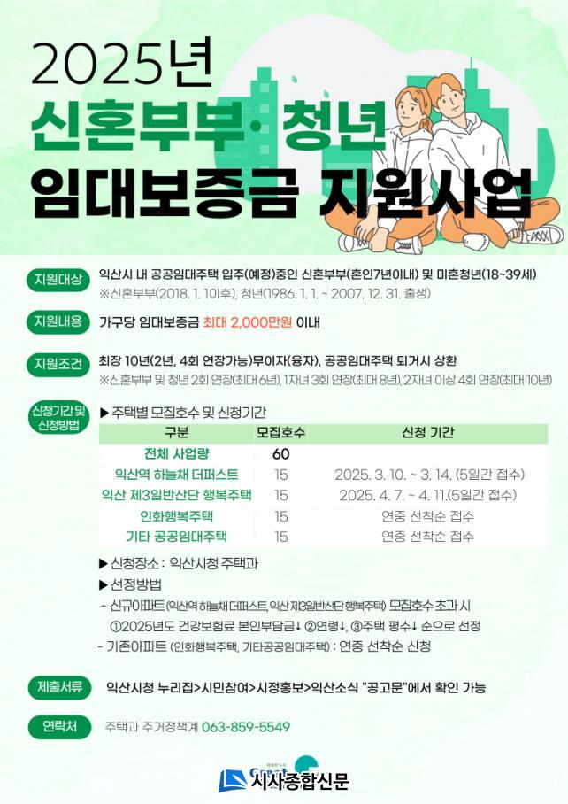 Áö¿ø ´ë»óÀº ÀÍ»ê½Ã ³» °ø°øÀÓ´ëÁÖÅÿ¡ °ÅÁÖ ÁßÀ̰ųª ½Å±Ô ÀÔÁÖ ¿¹Á¤ÀÎ ½ÅÈ¥ºÎºÎ¿Í ¹Ìȥû³âÀÌ´Ù. ½ÅÈ¥ºÎºÎÀÇ °æ¿ì 2018³â 1¿ù 1ÀÏ ÀÌÈÄ È¥ÀÎ ½Å°íÇÑ ºÎºÎ°¡ ÇØ´çµÇ¸ç, ¹Ìȥû³âÀº 1986³â 1¿ù 1ÀϺÎÅÍ 2007³â 12¿ù 31ÀÏ »çÀÌ¿¡ Ãâ»ýÇÑ ÀÚ°¡ ÇØ´çµÈ´Ù.