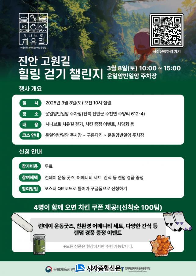 À̹ø Çà»ç´Â ÀüºÏ Áø¾È±º¡¤¿ÏÁÖ±º°ú Ãæ³² 4°³ ½Ã±ºÀÌ Çù·ÂÇØ ±âÁ¸ °È±â ¿©Çà±æÀ» Áö¿ª Æ¯È Å׸¶·Î ¹Ý¿µÇÑ Ä¡À¯ °È±â ¿©Çà »óǰÀÌ´Ù.