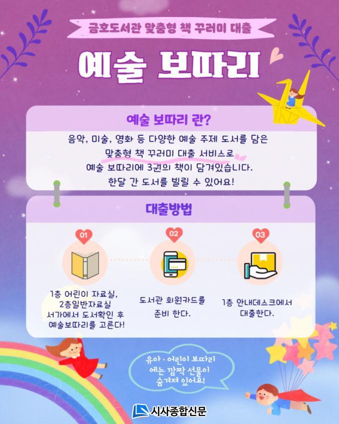 ±ÝÈ£µµ¼°üÀº Æ¯È ÁÖÁ¦ÀÎ ¡®¿¹¼ú¡¯À» Áß½ÉÀ¸·Î ¼ºÀÎÀ» ´ë»óÀ¸·Î ÇØ´ç ¼ºñ½º¸¦ Á¦°øÇØ ¿ÔÀ¸³ª ¿ÃÇØ´Â ±× ´ë»óÀ» ¿µÀ¯¾Æ, ¾î¸°ÀÌ·Î È®´ëÇß´Ù. À̸¦ ÅëÇØ ¾ÆÀ̵éÀº ¹Ì¼ú°ú À½¾ÇÀ» ÁÖÁ¦·Î »ç¼°¡ Á÷Á¢ ¼±Á¤ÇÑ »ý¾ÖÁֱ⺰ »ç¿îµåºÏ, ±×¸²Ã¥ µîÀÇ µµ¼¸¦ ¼Ò°³¹ÞÀ» ¼ö ÀÖ°Ô µÆ´Ù.