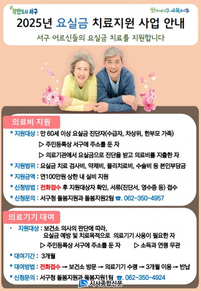¼±¸´Â Áö³ÇØ º¸°Çº¹ÁöºÎ °ø¸ð»ç¾÷¿¡ ¼±Á¤µÅ ¿ä½Ç±Ý ȯÀÚ¿¡ ´ëÇÑ Ä¡·áÁö¿øÀ» ½ÃÀÛÇßÀ¸¸ç ¿ÃÇØ´Â º¸°Ç¼Ò¿Í Çù·Âü°è¸¦ ¸¶·ÃÇØ ¿ä½Ç±Ý ÀÇ·á±â±â ¿î¿µ¡¤°ü¸®¿Í ȯÀÚ¿¡ ´ëÇÑ Áö¿øÀ» ´õ¿í °ÈÇØ ³ª°¥ °èȹÀÌ´Ù. »ç¾÷ °ü·Ã ÀÚ¼¼ÇÑ »çÇ×Àº ¼±¸Ã» µ¹º½Áö¿ø°ú µ¹º½Áö¿øÆÀ(062-360-4924, 4957)À¸·Î ¹®ÀÇÇÏ¸é µÈ´Ù.