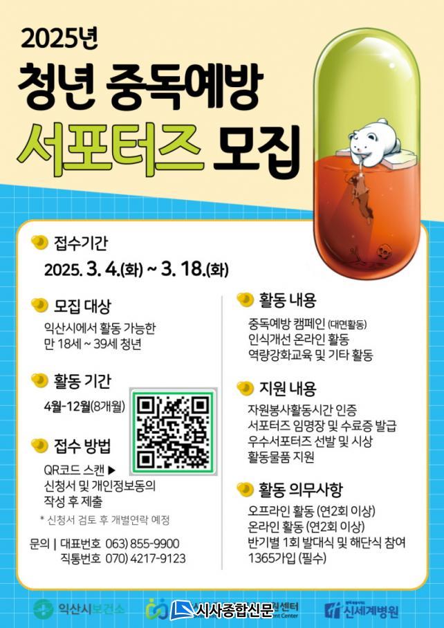 ÀÍ»ê½ÃÁßµ¶°ü¸®ÅëÇÕÁö¿ø¼¾ÅÍ(¼¾ÅÍÀå ÀÌÇö±â)´Â ¸¸ 18~39¼¼ û³âÀ» ´ë»óÀ¸·Î ¿À´Â 18ÀϱîÁö 'û³â Áßµ¶ ¿¹¹æ ¼Æ÷ÅÍÁî 3±â'¸¦ ¸ðÁýÇÑ´Ù°í 11ÀÏ ¹àÇû´Ù.