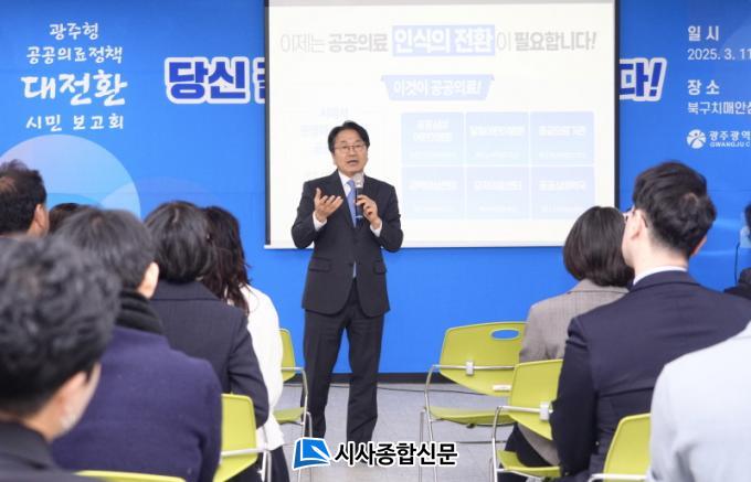 °±âÁ¤ ±¤ÁÖ±¤¿ª½ÃÀåÀº 11ÀÏ ¿ÀÈÄ ±¤Áֺϱ¸Ä¡¸Å¾È½É¼¾ÅÍ¿¡¼ ¿¸° ¡®±¤ÁÖÇü °ø°øÀÇ·á Á¤Ã¥ ´ëÀüȯ ½Ã¹Îº¸°íȸ-´ç½Å °ç¿¡ °Ç°ÀÌ ¿Â´Ù¡¯¿¡¼ ÀÌ °°Àº ³»¿ëÀÇ ¡®½Ã¹Î Á᫐ °ø°øÀÇ·á Á¤Ã¥¡¯À» ¹ßÇ¥Çß´Ù.