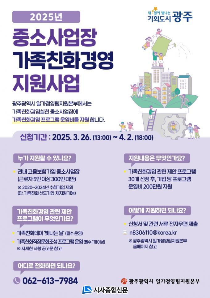 Áö¿øÀÚ°ÝÀº ±¤Áֽà º»»ç »ç¾÷ÀåÀ¸·Î ±Ù·ÎÀÚ 5ÀÎ ÀÌ»ó 300ÀÎ ¹Ì¸¸ °í¿ëº¸Çè¿¡ °¡ÀÔÇÑ °¡Á·Ä£È°æ¿µ ½Çõ Áß¼Ò»ç¾÷ÀåÀÌ´Ù. 2020~2024³â °¡Á·Ä£È°æ¿µ Áö¿ø»ç¾÷ ¼öÇý±â¾÷Àº ½ÅûÇÒ ¼ö ¾ø´Ù. °¡Á·Ä£È ¼±µµ±â¾÷Àº 1ȸ¿¡ ÇÑÇØ ´Ù½Ã Áö¿ø °¡´ÉÇÏ´Ù.