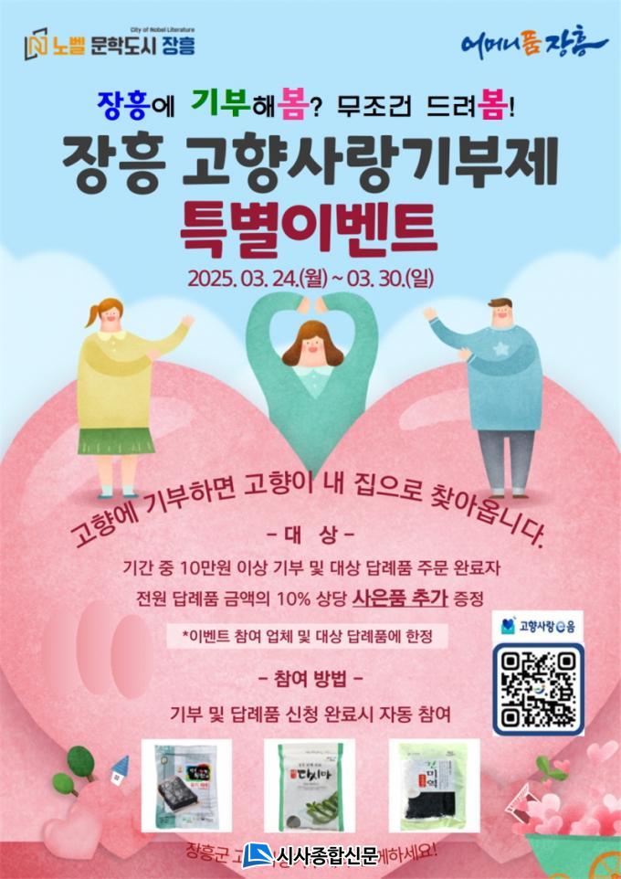 À̹ø Çà»ç´Â 3¿ù 24ÀÏ(¿ù)ºÎÅÍ 3¿ù 30ÀÏ(ÀÏ)±îÁö 7Àϰ£ ÁøÇàµÇ¸ç ±â°£ Áß ÀåÈﱺ¿¡ °íÇâ»ç¶û±âºÎ ÈÄ ´ä·ÊǰÀ» ÁÖ¹®ÇÑ »ç¶÷À» ´ë»óÀ¸·Î ±¸¸Å±Ý¾×ÀÇ 10%¿¡ »ó´çÇϴ Ư»êǰÀ» Ãß°¡·Î ÁõÁ¤ÇÑ´Ù.