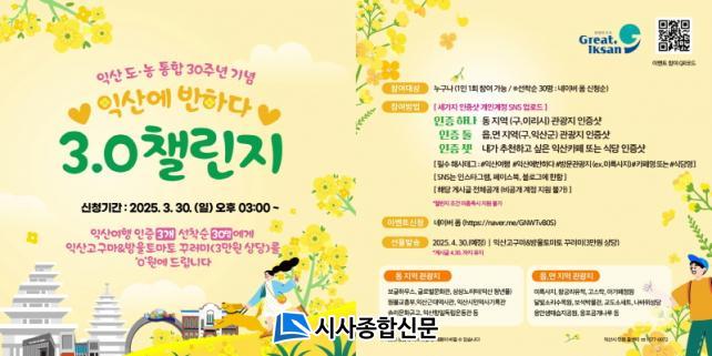 ÀÍ»ê½Ã´Â À̸®½Ã¿Í Àͻ걺ÀÇ µµ³ó ÅëÇÕ 30ÁÖ³âÀ» ±â³äÇØ 'Àͻ꿡 ¹ÝÇϴ٠縰Áö 3.0'À» ÁøÇàÇÑ´Ù°í 24ÀÏ ¹àÇû´Ù. À̹ø À̺¥Æ®´Â ¿¾ À̸®½Ã¿Í Àͻ걺 Áö¿ªÀÇ °ü±¤Áö¸¦ °¢°¢ 1°÷ ÀÌ»ó ¹æ¹®Çϰí, ÀÍ»ê ¼ÒÀç Ä«Æä³ª À½½ÄÁ¡À» ÀÌ¿ëÇÑ ÀÎÁõ»çÁøÀ» ³²°Ü¾ß Âü¿©ÇÒ ¼ö ÀÖ´Ù.