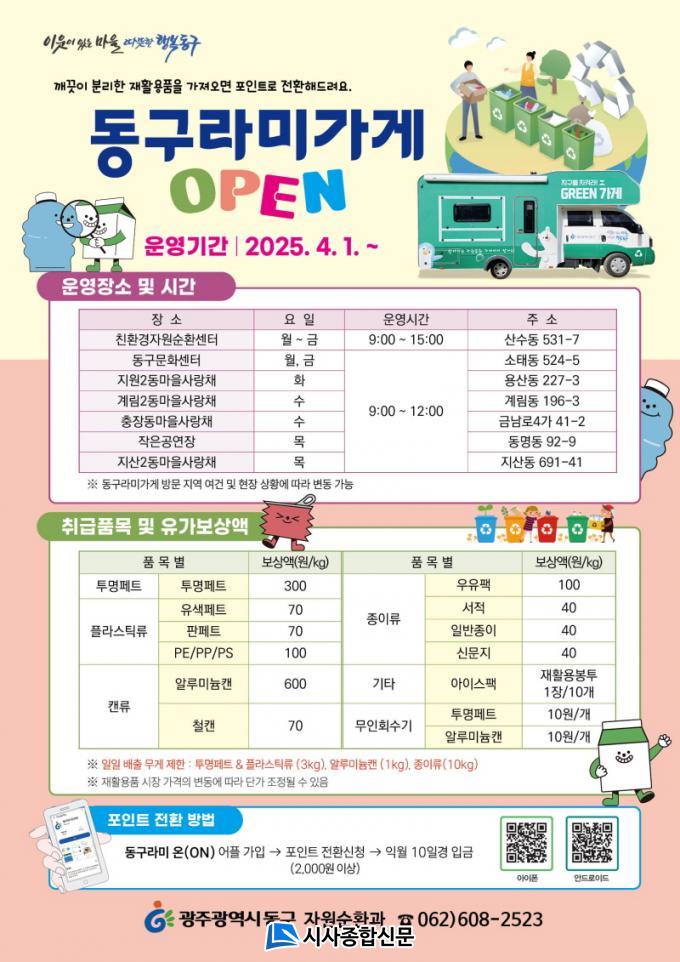 µ¿±¸¶ó¹Ì °¡°Ô´Â °¡Á¤¿¡¼ ±ú²ýÇÏ°Ô ¼¼Ã´ÇÏ°í ºÐ·ùÇÑ ÀçȰ¿ë °¡´É ÀÚ¿øÀ» °¡Á®¿À¸é ǰ¸ñº°·Î ¹«°Ô ±âÁØ¿¡ µû¶ó ÀÚ¿ø ¼øÈ¯ ÅëÇÕÇ÷§Æû ¾îÇà ¡®µ¿±¸¶ó¹Ì ¿Â¡¯ Æ÷ÀÎÆ®¸¦ Àû¸³, Çö±ÝÀ¸·Î º¸»óÇØ ÁØ´Ù. º¸»ó ǰ¸ñÀº Åõ¸í ÆäÆ®, ÇÃ¶ó½ºÆ½·ù, ĵ·ù, Á¾ÀÌ·ù, Á© ¾ÆÀ̽ºÆÑ µî 11°¡Áö°¡ ÇØ´çµÈ´Ù.