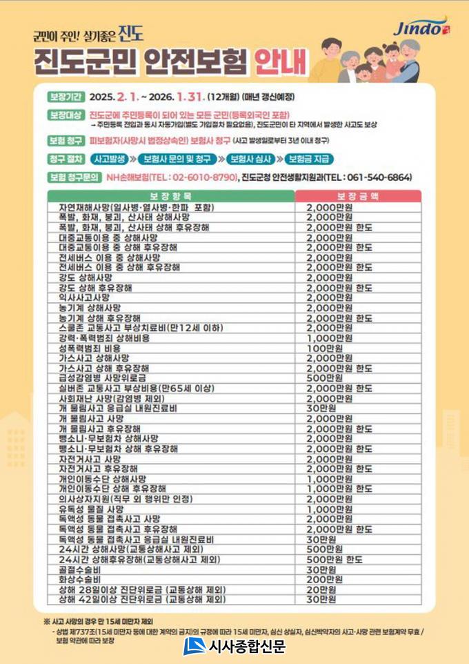 2021³âºÎÅÍ 2024³â±îÁö Áö³ 3³â µ¿¾È Áøµµ±º¹ÎÀº ±º¹Î¾ÈÀüº¸ÇèÀ» ÅëÇØ ÃÑ 154°Ç, 7¾ï 3,500¸¸ ¿øÀÇ º¸Çè±ÝÀ» ¹Þ¾Ò´Ù.