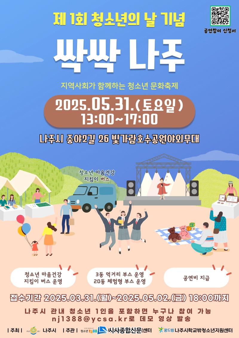 ¡®½Ï½Ï ³ªÁÖ¡¯´Â û¼Ò³âµéÀÇ ½É¸®¡¤Á¤¼Àû Èú¸µ ¹× ½ºÆ®·¹½º ÇØ¼Ò¸¦ µ½°í ´Ù¾çÇÑ ¶Ç·¡µé°úÀÇ ±³·ù¿Í ¼ÒÅëÀ¸·Î °ÇÀüÇÑ Ã»¼Ò³â ¹®È Á¤ÂøÀ» À§ÇØ °³ÃÖÇϴ û¼Ò³â Çà»ç·Î, 5¿ù 31ÀÏ Åä¿äÀÏ ¿ÀÈÄ 1½ÃºÎÅÍ 5½Ã±îÁö ÁøÇàµÈ´Ù.