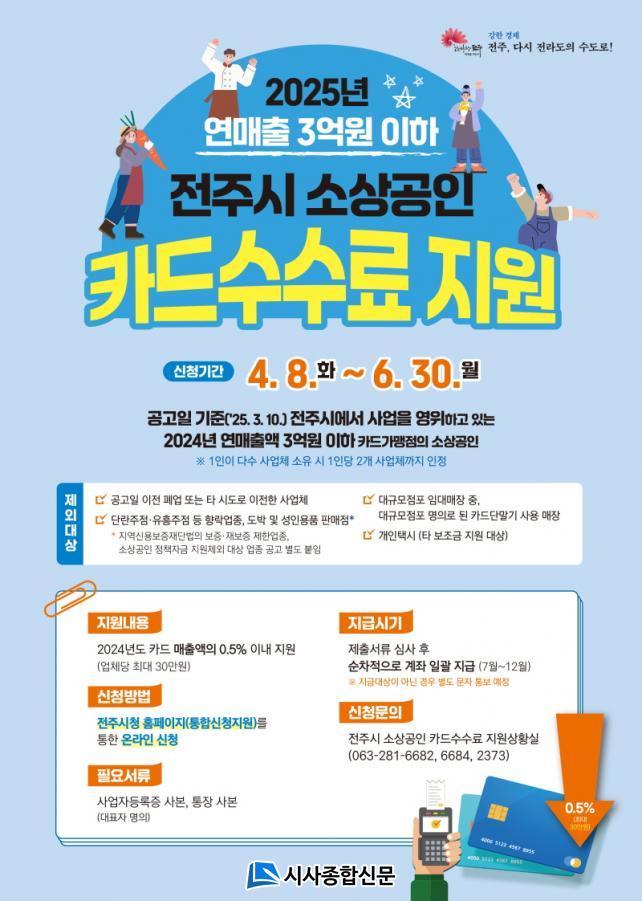 ½Ã´Â 8ÀϺÎÅÍ ¿À´Â 6¿ù 30ÀϱîÁö ÀüÁֽà ¼Ò»ó°øÀÎÀ» ´ë»óÀ¸·Î 2024³âµµ Ä«µå¸ÅÃâ¾×ÀÇ 0.5% À̳», ¾÷ü´ç ÃÖ´ë ¿¬°£ 30¸¸ ¿ø±îÁö Áö¿øÇÏ´Â ¡®2025³â ¼Ò»ó°øÀÎ Ä«µå¼ö¼ö·á Áö¿ø»ç¾÷¡¯ ½ÅûÀ» Á¢¼öÇÑ´Ù.