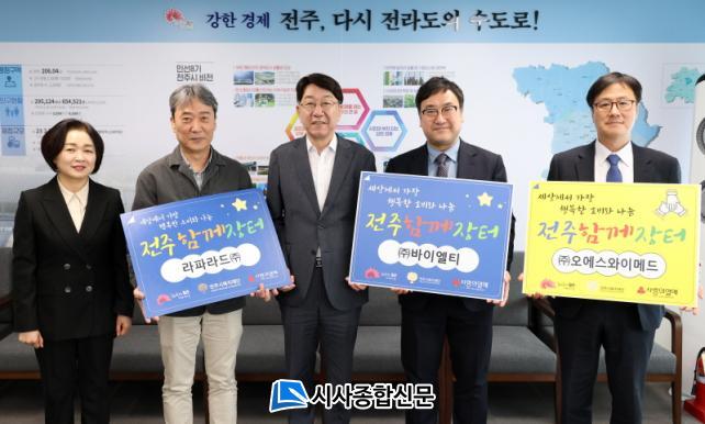 ÀüÁֽô Áö³ 8ÀÏ ¡â¶óÆÄ¶óµå(´ëÇ¥ ÀÓ¿µ°æ) ¡â¹ÙÀÌ¿¤Æ¼(´ëÇ¥ °»ó¹Î) ¡â¿À¿¡½º¿ÍÀ̸޵å(´ëÇ¥ À̼¼Ã¶) µî ÀüÁÖÁö¿ª 3°³ ¹ÙÀÌ¿À±â¾÷°ú ÀüÁÖÇü ÂøÇÑ ¼ÒºñÀÚ ¿îµ¿ÀÎ ¡®ÀüÁÖÇÔ²²ÀåÅÍ¡¯ ÇÁ·ÎÁ§Æ® ¼º±Ý Àü´Þ½ÄÀ» °¡Á³´Ù.