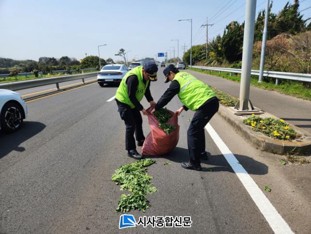 À̳¯ Æò¼Ò¿Í °°ÀÌ ÇØ¾È¼± ¼øÂûÀ» ½Ç½ÃÇÏ´ø Áß ÀÏÁÖµµ·Î¸¦ ¸·°í Â÷·®ÅëÇàÀ» ¹æÇØÇÏ´ø ´ëÇü Æ÷´ë¸¦ ¹ß°ßÇÑ ÇØ¾È1°æºñ´ë ¼Ò¼Ó °æ°¨ °í½ÂÁö µî Á÷¿øµéÀº ±×³É Áö³ªÄ¡Áö ¾Ê°í Áï½Ã µµ·Î¹æÄ¡¹°À» °«±æ·Î À̵¿½ÃÄÑ ´ëÇü±³Åë»ç°íÀÇ À§ÇèÀ» ¹æÁöÇϴ Ȱµ¿À» ½Ç½ÃÇß´Ù.