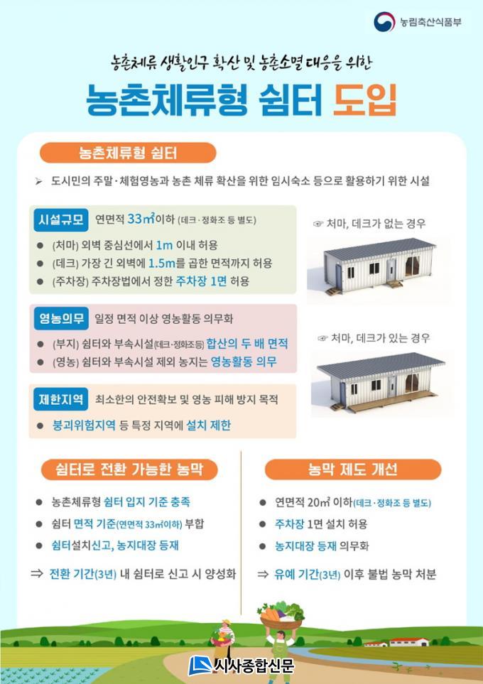 ³óÃÌü·ùÇü ½°ÅÍ´Â ³ó¾÷Àΰú ÁÖ¸» üÇè ¿µ³óÈñ¸ÁÀÚÀÇ ÆíÀǸ¦ µ½°íÀÚ ¼³Ä¡ÇÏ´Â ¿¬¸éÀû 33§³ ÀÌÇÏ °¡¼³°ÇÃ๰ ÇüÅÂÀÇ Àӽà ¼÷¼Ò·Î, ±âÁ¸ ¼÷¹ÚÀÌ ºÒ°¡´ÉÇß´ø ³ó¸·À» ´ëÃ¼ÇØ ³óÁöÀü¿ë Çã°¡ ¾øÀÌ ¼³Ä¡ÇÒ ¼ö ÀÖ´Ù.