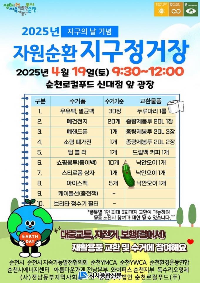 À̹ø Çà»ç´Â Áö±¸¸¦ »ý°¢ÇÏ´Â NO ÇÃ¶ó½ºÆ½À¸·Î ÁøÇàµÇ¸ç, ¼øÃµYMCA, ¼øÃµYWCA, (»ç)Àü³²µ¿ºÎÁö¿ª»çȸ¿¬±¸¼Ò, ¼øÃµÈ¯°æ¿îµ¿¿¬ÇÕ, ¼øÃµ½Ã¿¡³ÊÁö¼¾ÅÍ, ¾Æ¸§´Ù¿î°¡°Ô Àü³²º»ºÎ, ¿ÍÀÌÆÛ½º ¼øÃµÁöºÎ, µ¶¼ö¸®¿ÀÇüÁ¦, ³ó¾÷ȸ»ç¹ýÀÎ ¼øÃµ·ÎÄÃǪµå(ÁÖ) µî Áö¿ª ³» ´ÜüµéÀÌ ¿¬´ëÇÏ¿© ¼øÃµ½Ã¹Îµé°ú ÇÔ²²ÇØ Àǹ̸¦ ´õÇÑ´Ù.