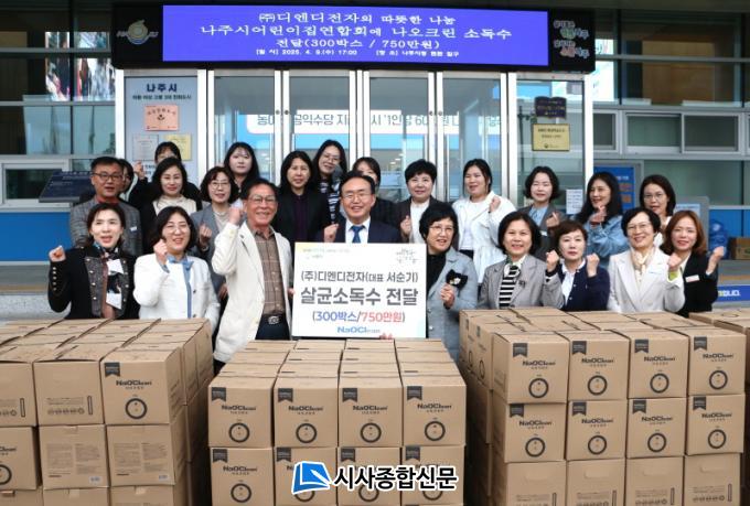 [½Ã»çÁ¾ÇսŹ® = ¿À½ÂÅà ±âÀÚ] ³ªÁÖ½Ã(½ÃÀå À±º´ÅÂ)°¡ Áö³ 9ÀÏ Ä£È¯°æ »ì±Õ¼ö Àü¹® Á¦Á¶¾÷ü ¢ßµð¿£µðÀüÀÚ(´ëÇ¥ ¼¼ø±â)·ÎºÎÅÍ °ü³» ¾î¸°ÀÌÁý À§»ý°ü¸®¸¦ À§ÇÑ »ì±Õ¼Òµ¶¼ö 300¹Ú½º(750¸¸ ¿ø »ó´ç)¸¦ ±âŹ¹Þ¾Ò´Ù°í ¹àÇû´Ù.