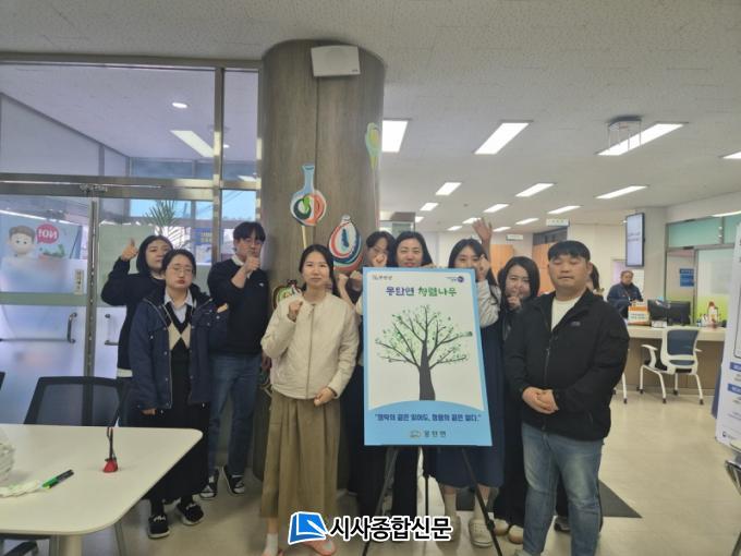 ¸ùź¸é»ç¹«¼Ò Àü Á÷¿ø 20¿©¸íÀº ´ëÇü ĵ¹ö½º¿¡ ±×·ÁÁø ³ª¹«¿¡ Á÷Á¢ ¼ÕµµÀåÀ¸·Î ¼ÒÅë ³ª¹«¸¦ ¿Ï¼ºÇÏ¿© û·Å ½ÇõÀÇ ¶æÀ» ¸ð¾Ò°í, À̾î û·Å ¹®±¸¸¦ ÇÔ²² ³¶µ¶ÇÏ¸ç ½Å·Ú¹Þ´Â °øÁ÷»çȸ Á¶¼ºÀ» À§ÇØ ¾ÕÀå¼°Ú°í ´ÙÁüÇß´Ù.