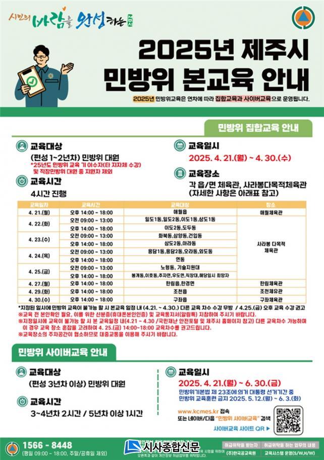| Á¦ÁÖ½Ã, 2025³â ¹Î¹æÀ§ º»±³À° ½Ç½Ã 4¿ù 21ÀϺÎÅÍ 6¿ù 30ÀϱîÁö ¹Î¹æÀ§´ë¿ø 3¸¸¿© ¸í ´ë»ó |