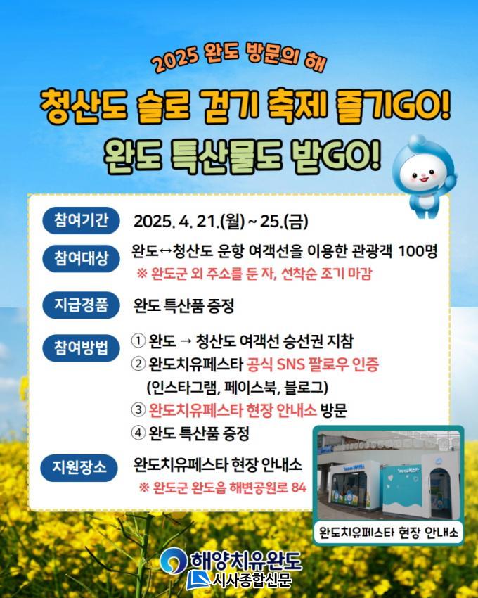 [½Ã»çÁ¾ÇսŹ® = ¿À½ÂÅà ±âÀÚ] ¿Ïµµ±ºÀº û»êµµ ½½·Î°È±â ÃàÁ¦ ±â°£ Áß Ã»»êµµ¸¦ ¹æ¹®ÇÑ °ü±¤°´À» ´ë»óÀ¸·Î ¡®¿Ïµµ Ä¡À¯ Æä½ºÅ¸¡¯ ÇöÀå À̺¥Æ®¸¦ ÁøÇàÇÑ´Ù.