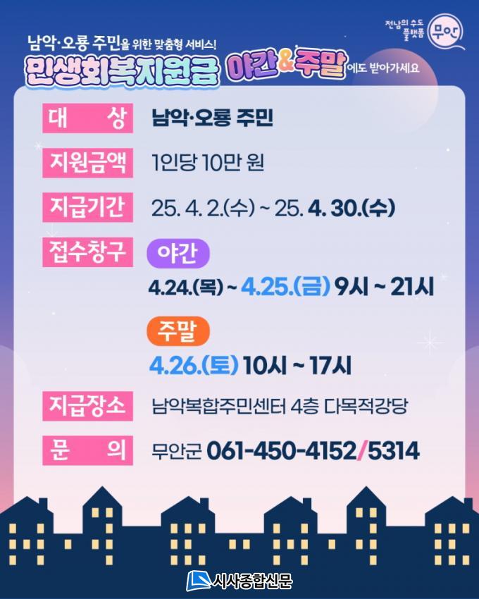 [½Ã»çÁ¾ÇսŹ® = ¿À½ÂÅà ±âÀÚ] ¹«¾È±º(±º¼ö ±è»ê)Àº Áö¿ª°æÁ¦ ȸº¹ÀÇ ¸¶Áß¹° ¿ªÇÒÀ» Çϰí ÀÖ´Â Àü ±º¹Î 1Àδç 10¸¸¿øÀÇ ¡®¹Î»ýȸº¹Áö¿ø±Ý¡¯À» º¸´Ù Æí¸®ÇÏ°Ô ¼ö·ÉÇÒ ¼ö ÀÖµµ,·Ï ³²¾Ç¡¤¿À·æ ÁֹΠ´ë»óÀ¸·Î ¾ß°£¡¤ÁÖ¸» Ưº°Áö±Þ ⱸ¸¦ ¿î¿µÇÑ´Ù.