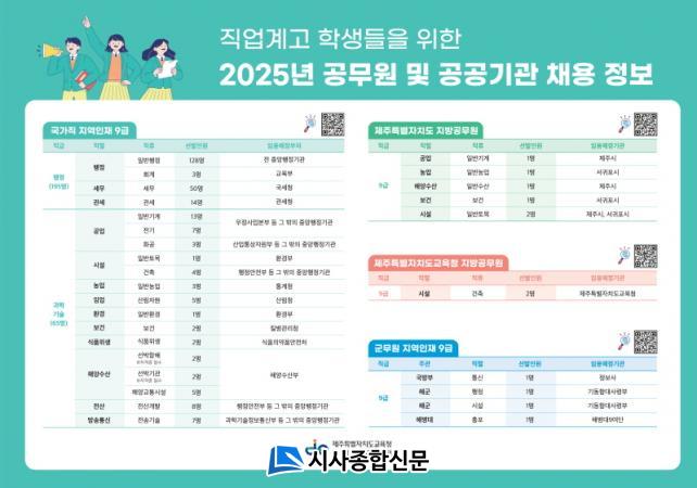 [½Ã»çÁ¾ÇսŹ® = °í¼º¹Î ±âÀÚ] Á¦ÁÖÆ¯º°ÀÚÄ¡µµ±³À°Ã»(±³À°°¨ ±è±¤¼ö)Àº 18ÀÏ µµ³» Á÷¾÷°è°í ÇлýµéÀÇ °ø¹«¿ø ¹× °ø°ø±â°ü Ãë¾÷À» Áö¿øÇϱâ À§ÇØ ¡®2025³â °ø¹«¿ø ¹× °ø°ø±â°ü ä¿ë Á¤º¸¡¯È«º¸¹° 200ºÎ¸¦ Á¦ÀÛÇØ ¹èºÎÇÑ´Ù°í ¹àÇû´Ù.