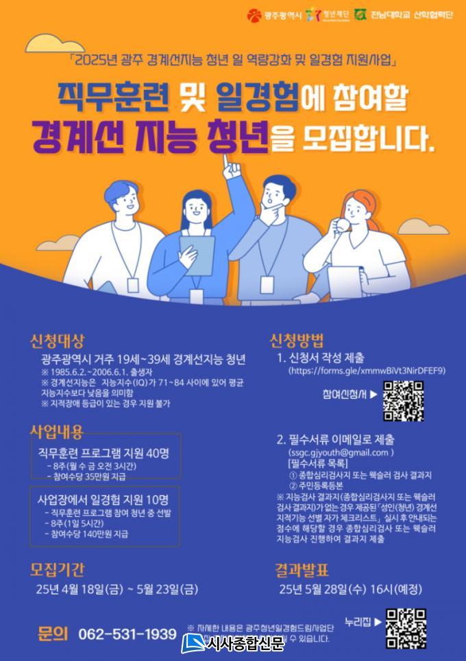 ±¤ÁÖ±¤¿ª½Ã(½ÃÀå °±âÁ¤)´Â û³âÀç´Ü, Àü³²´ëÇб³ »êÇÐÇù·Â´Ü°ú ¼ÕÀâ°í °æ°è¼±Áö´É û³âµé¿¡°Ô ÀϰæÇè ±âȸ¸¦ Á¦°øÇÏ´Â ¡®°æ°è¼±Áö´É û³â ÀÏ¿ª·® °È Áö¿ø ½Ã¹ü»ç¾÷¡¯À» ÃßÁø, ¿À´Â 5¿ù23ÀϱîÁö Èñ¸ÁÀÚ¸¦ ¸ðÁýÇÑ´Ù.