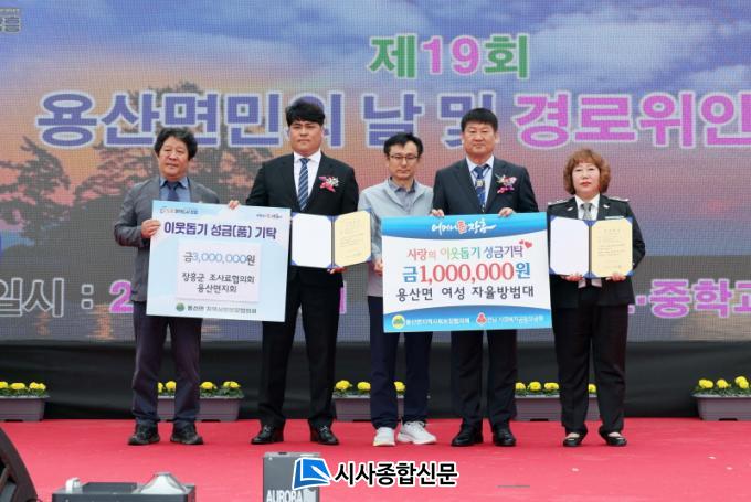 À̳¯ ÀåÈﱺ Á¶»ç·áÇùÀÇȸ ¿ë»ê¸é Áöȸ(ÁöȸÀå ¹é±ÔÇå)¿Í ¿ë»ê¸é ¿©¼ºÀÚÀ²¹æ¹ü´ë(´ëÀå ±èÀº¹Ì)°¡ ¿ë»ê¸é Áö¿ª»çȸº¸ÀåÇùÀÇü¿¡ °¢°¢ 300¸¸¿ø°ú 100¸¸¿øÀ» ±âŹÇß´Ù.