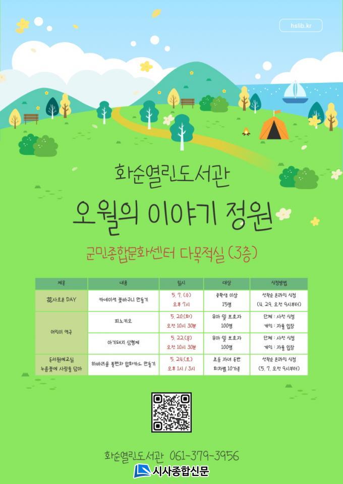 5¿ù 24ÀÏ(Åä)¿¡´Â ¿ÀÈÄ 1½Ã ¡¤ 3½Ã µÎ Â÷·Ê¿¡ °ÉÃÄ ¡®µ¶¼¿ø¿¹±³½Ç : ´©¸§²É¿¡ »ç¶ûÀ» ´ã¾Æ¡¯ ÇÁ·Î±×·¥ÀÌ ¿î¿µµÈ´Ù. °¡Á·ÀÇ »ç¶û¿¡ °üÇÑ Ã¥À» ÀÐ°í °¡Á·µé°ú À̾߱⸦ ³ª´©¸ç ½Ä¹°Ç¥º»(ÇϹٸ®¿ò) º¼Ææ°ú ¾ÐÈ Ä«µå¸¦ ¸¸µå´Â ÀÌ ¼ö¾÷Àº ȸÂ÷º°·Î ÃʵîÇлý Àڳฦ µ¿¹ÝÇÑ 10°¡Á·(°¡Á·´ç ÃÖ´ë 4¸í)À» ¸ðÁýÇÑ´Ù.